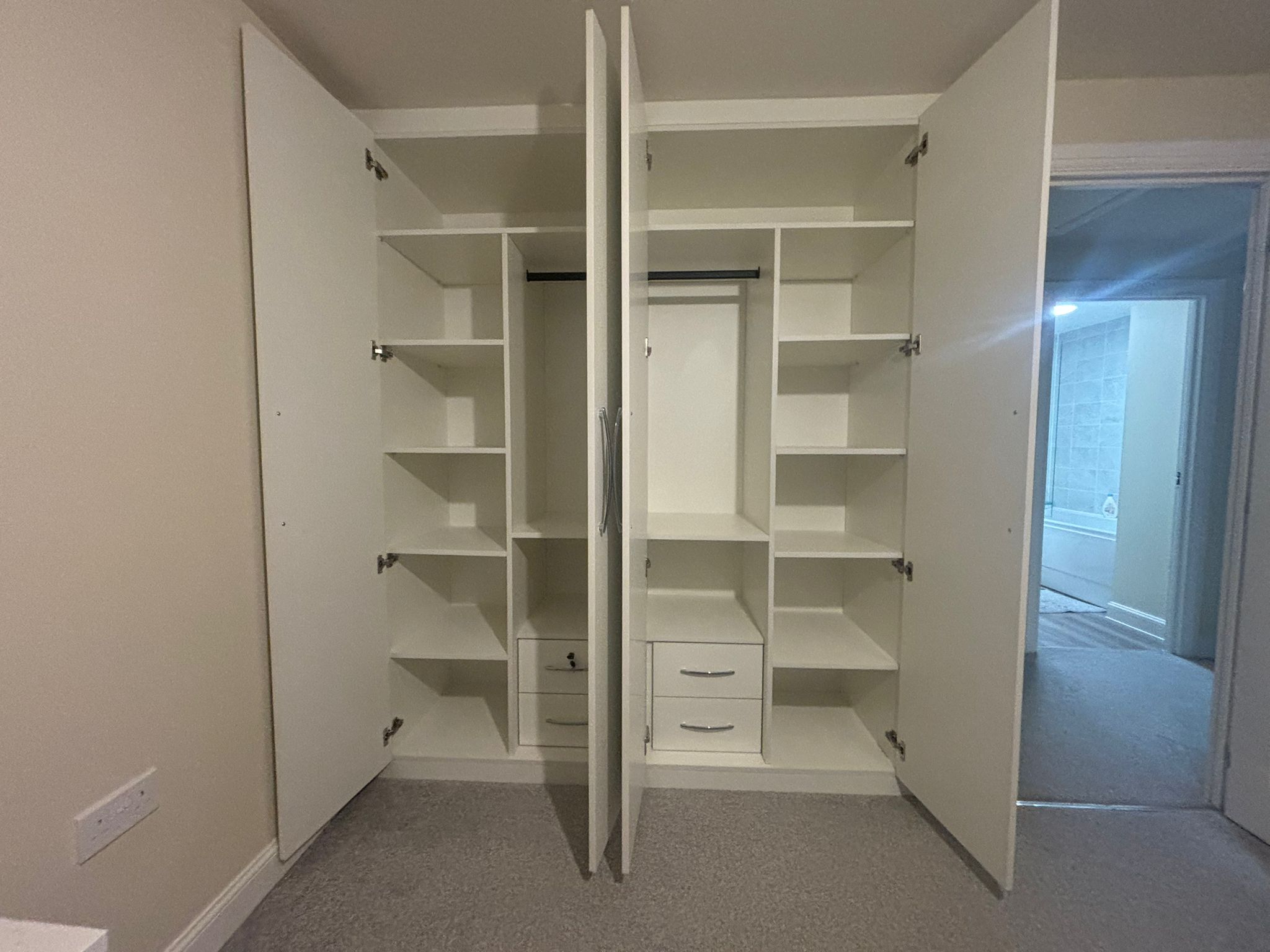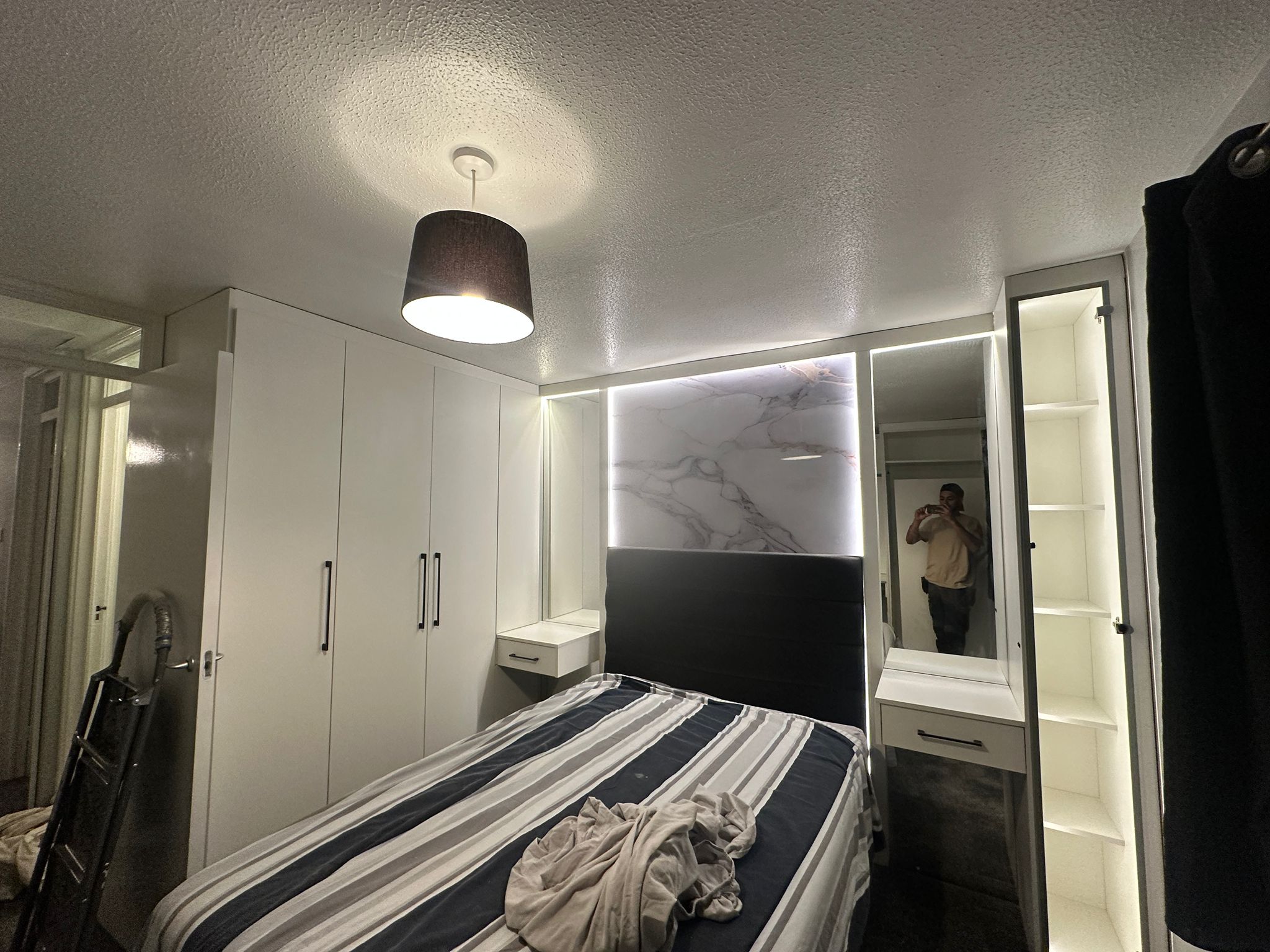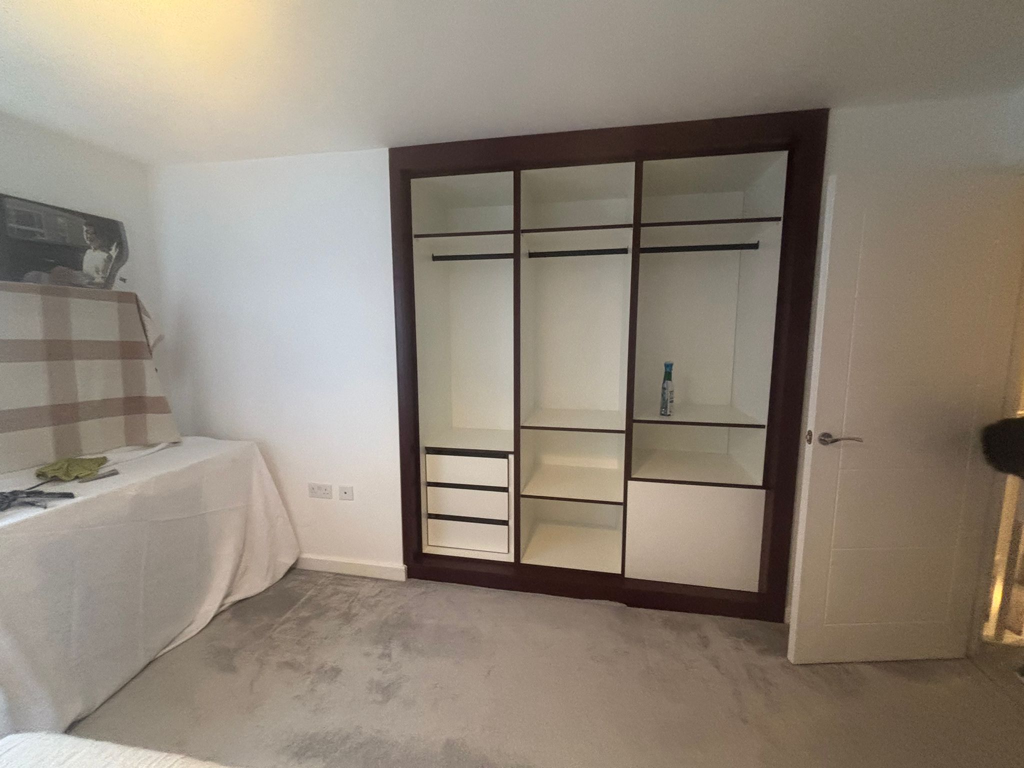 Bedroom with custom cabinets
