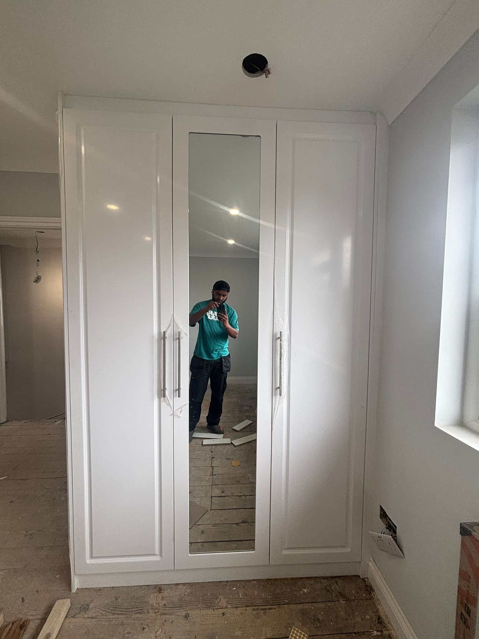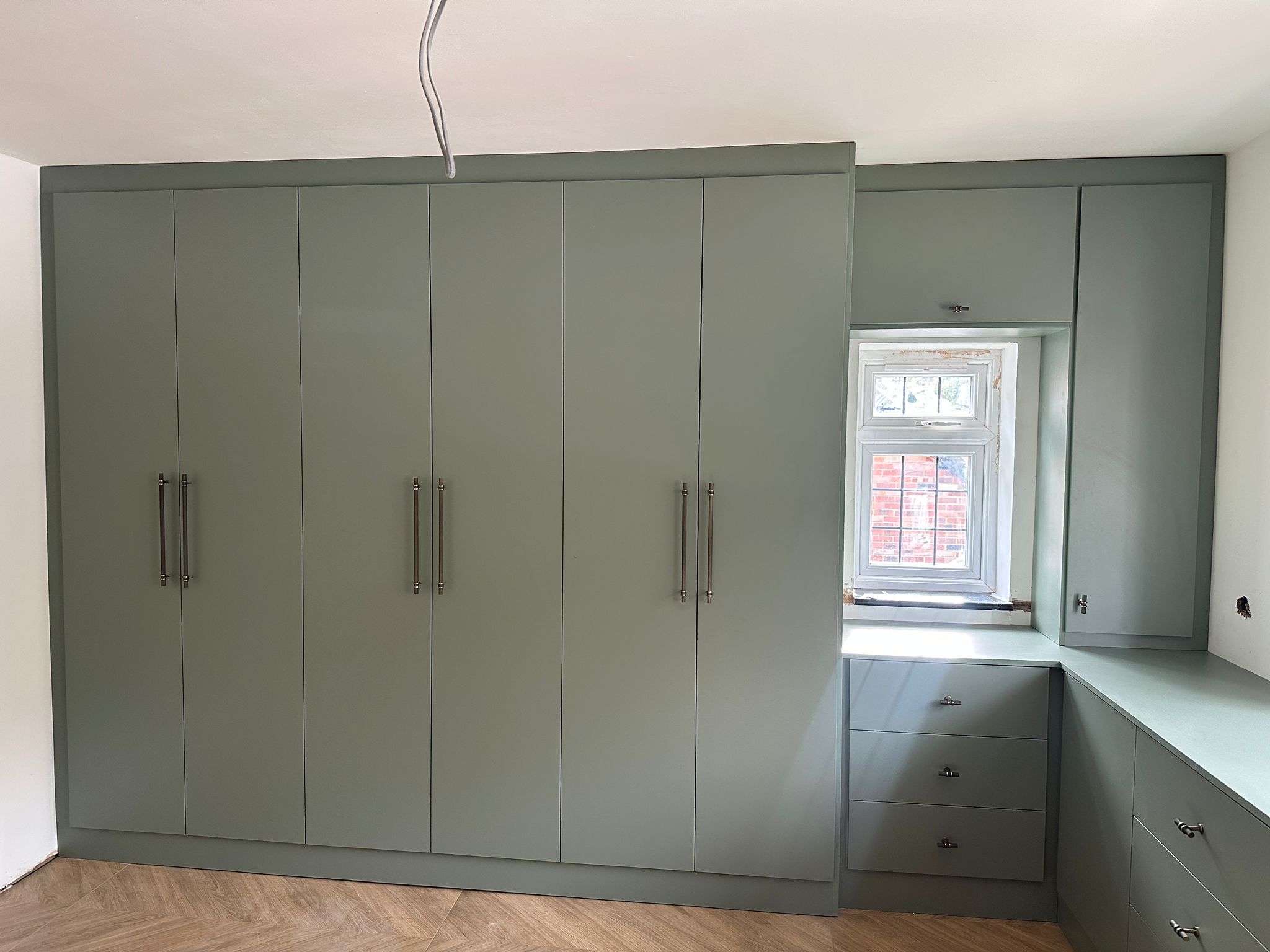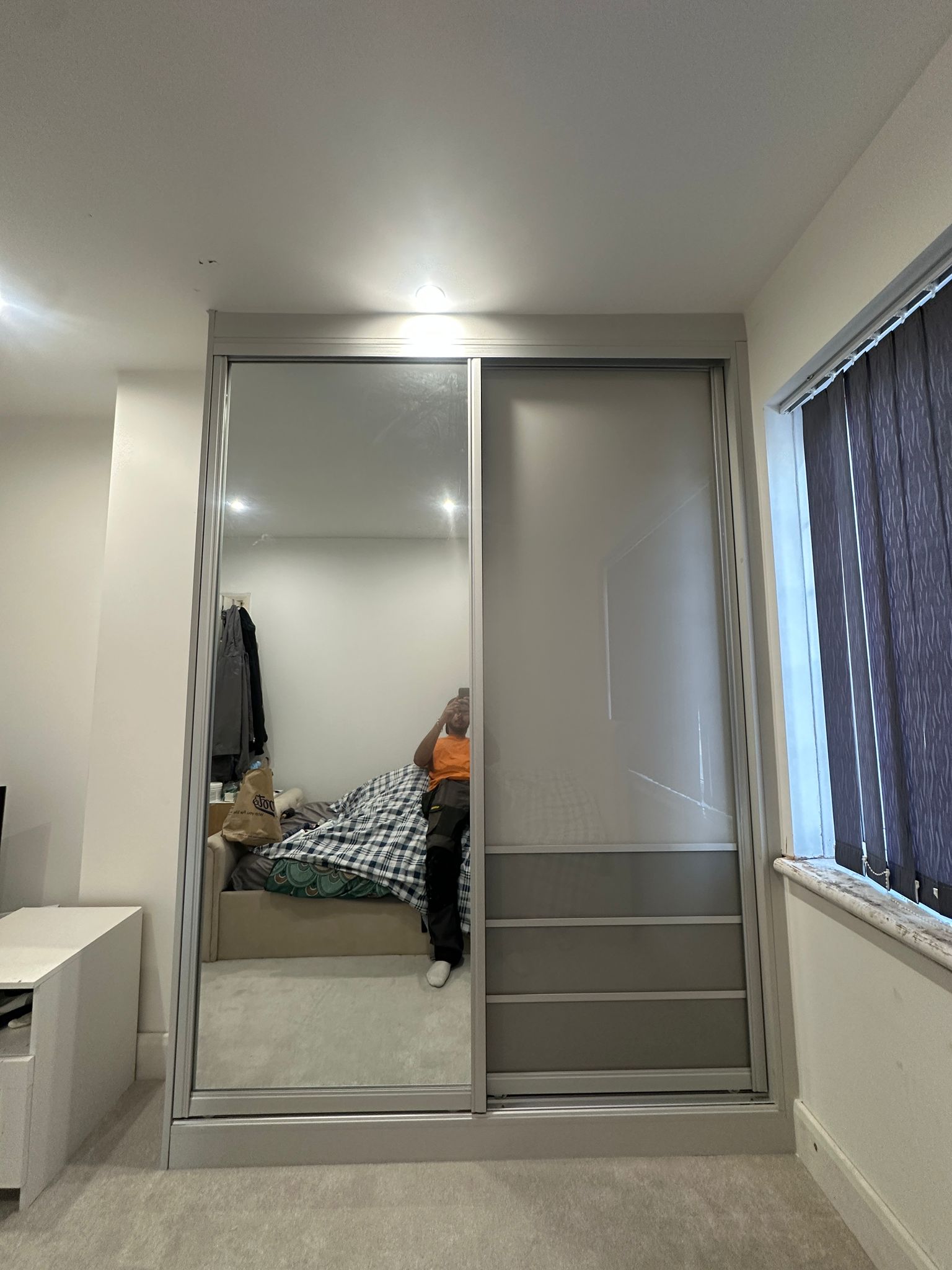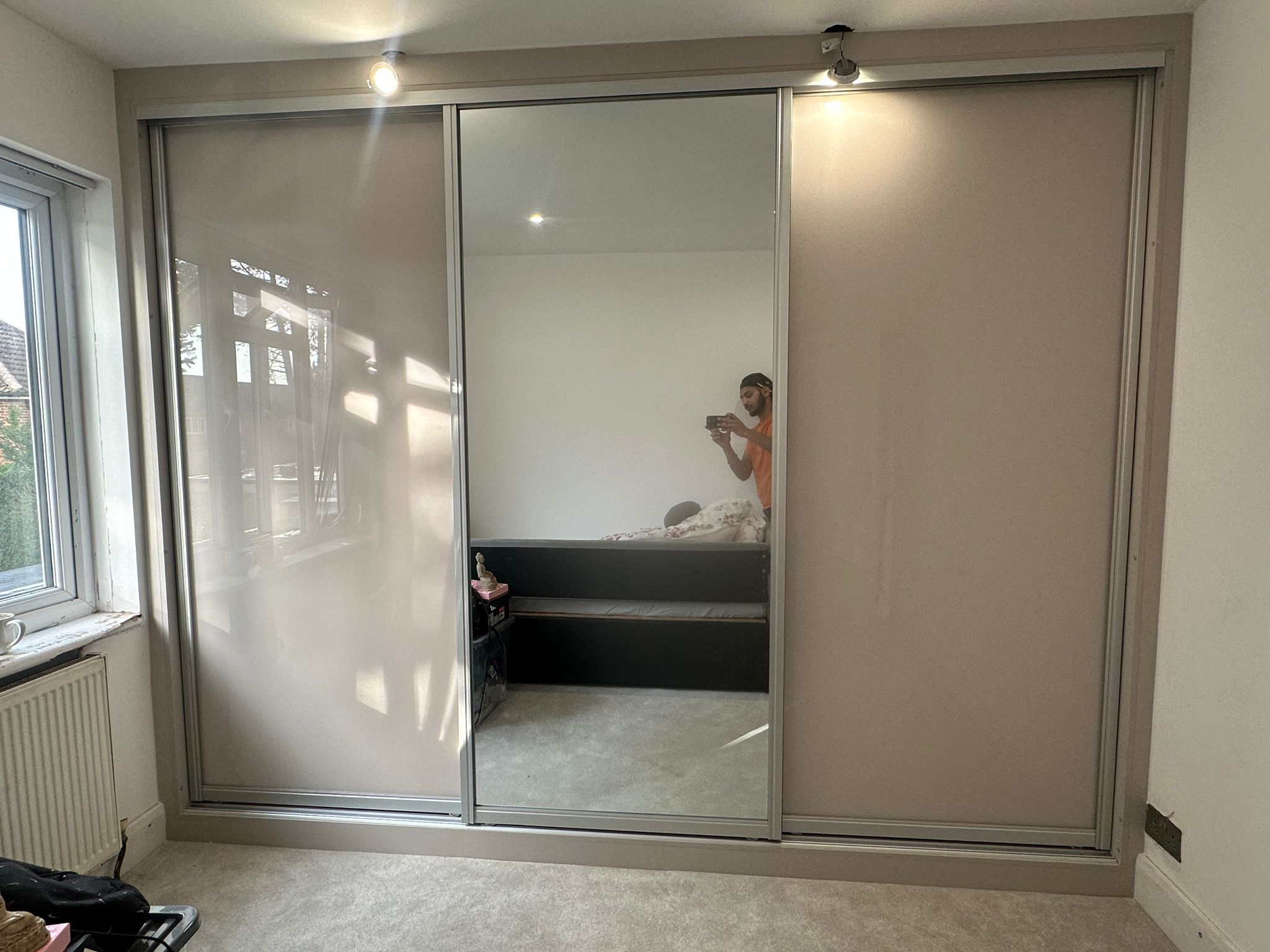 Bedroom with custom cabinets